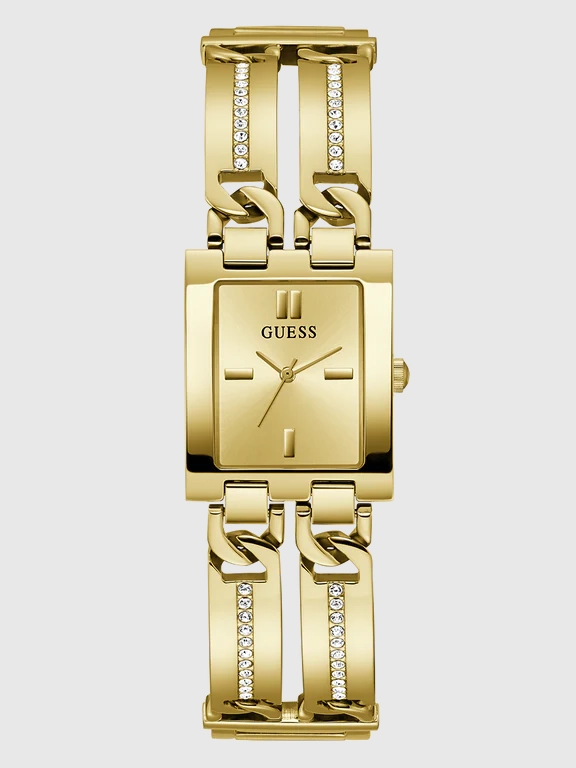 La Guess Mod Id – GW0668L2 est une montre pour femme qui offre une sophistication discrète mais affirmée. Dotée d’un bracelet en acier doré, la montre a un boîtier rectangulaire doré de 24 mm de diamètre. Son étanchéité est de 30 m, ce qui la rend idéale pour une utilisation quotidienne sans craindre l’eau. Avec son mouvement à quartz, l’affichage analogique assure une haute précision. La boucle déployante garantit un port confortable et sûr. Enfin, le verre minéral protège le cadran et ajoute une touche de luxe.